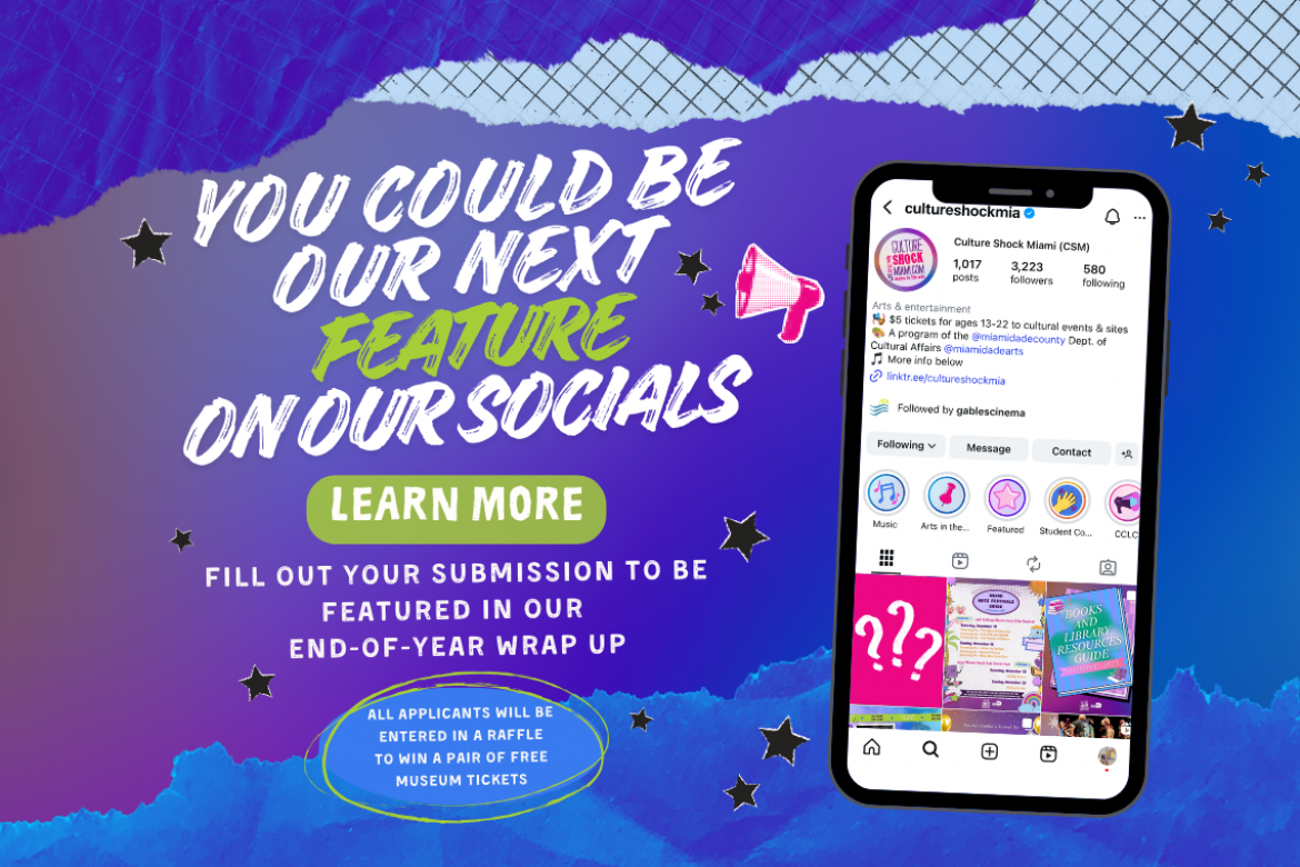 Are you between the ages of 13-22 and passionate about Arts and Culture? We're looking for students to write blog posts about arts events in Miami-Dade County (and receive community service hours!).